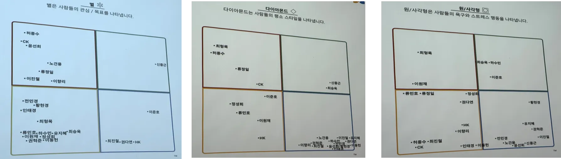 서로에 대한 이미지가 진단결과와 얼마나 잘맞는지 알아보는 시간이 끝나고…